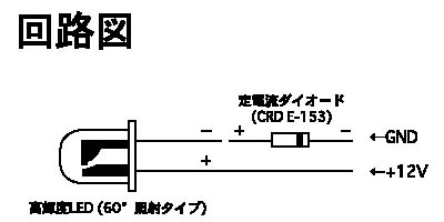 部品:高輝度LED(照射角60度)×2個、定電流ダイオード×2個