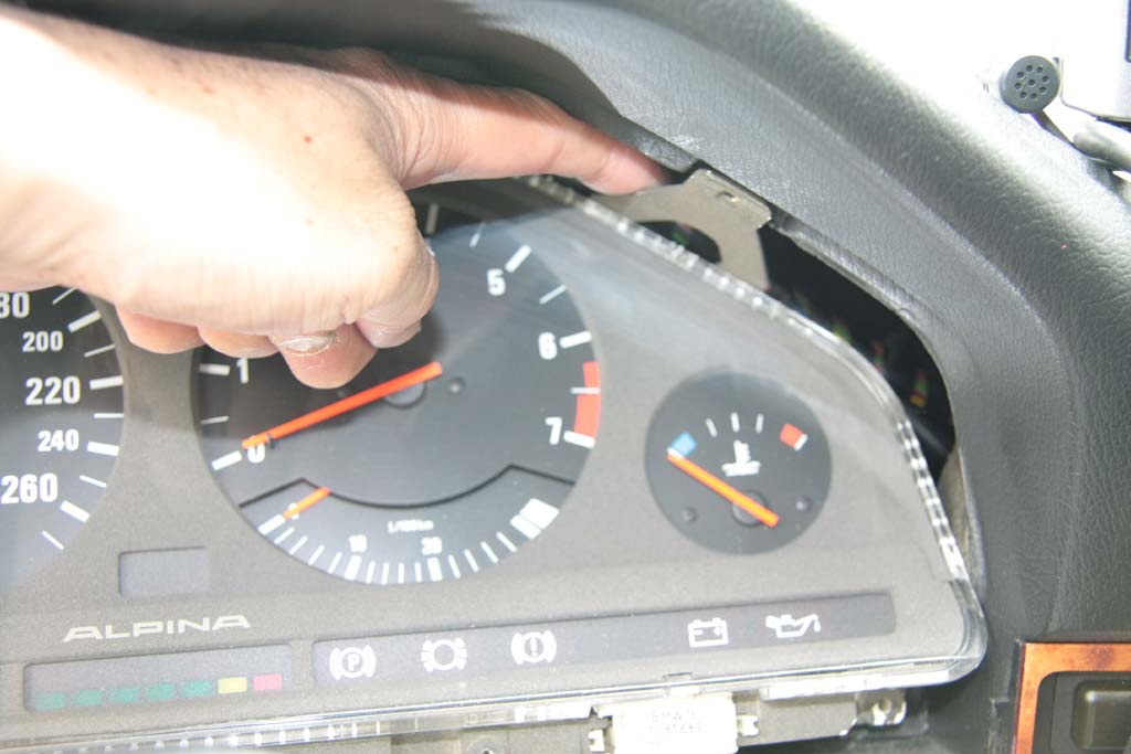 外した部分は軽く手前に引きながらメーターを引きずり出します。(割れやすいので注意)