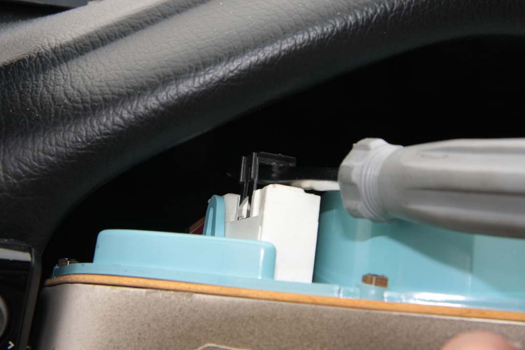 メーターのハーネスを取り外します。黒い部分を持ち上げてやると簡単に引き抜けます。