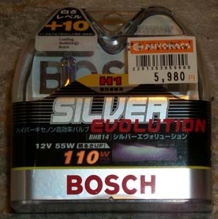 ロービーム(HID)とハイビームの色違いを補うのに、BOSCHのシルバーエボリューションというH1球を取付けました。写真では判りにくいですが、HIDとハロゲンランプの差が少ないです。ノーマルに取り付ければ、HIDもどきですが、車検対応でなく、競技車専用なので、念の為。。。