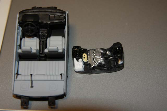 こんどはエンジンルームを加工。外観は後期型なのになぜかエンジンルームは前期。
