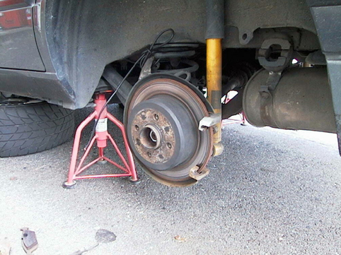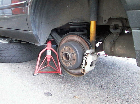 まずは、ジャッキアップする事から始めます。ジャッキアップポイントを間違えない様に・・・