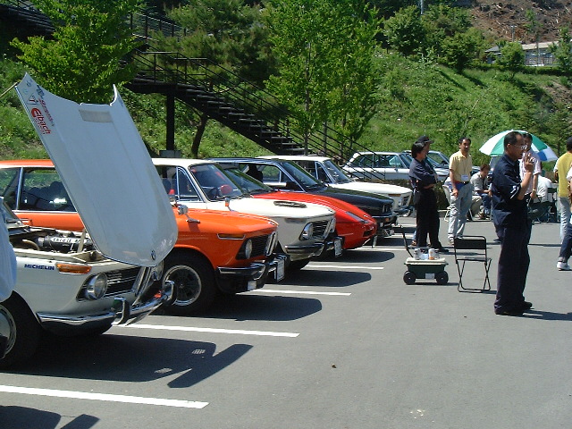 | 5/13高遠のワンショットです。ちょっと画像が小さいのですが、じまさ号E30(ブラック)とツークンフト号Z1(レッド)がオールドBMWに囲まれています。おやおや「じまささん」も登場していますね。参加台数40台以上という盛会の内に終了できました。これもじまささん、ツークンフトさん、kibayashiさん方のおかげでもあります。本当にありがとうございました。これに懲りず、またチャンスがありましたら御一緒下さい。我々もお声をかけて頂ければ出来るだけご一緒させて頂きたいと思います。bmw1800alpina乗りでした。 | ||