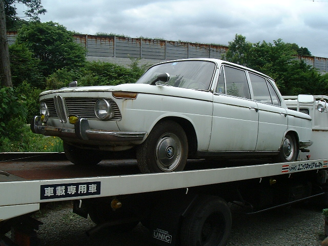 | 本日御殿場より引き上げてきた67年式1800TIです。 何とも愛らしいまんまる顔ですねぇ。 さぁ〜て、これからどう致しましょうかねぇ。。。 BMW君 まずはパーツを外して傷みを見てみましょう。 | ||