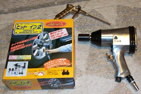 | ひょんな事から、エアコンプレッサーが手に入ったので、 元々無かった、レギュレター・ホース等とインパクトレンチ、 エアーブラスター(?)を購入しちゃいました。しめて1.4万円! エアーでしゅ〜っとホイールを吹けば、パッドのカスも飛んで、 綺麗になってくれます。シートに吹き付ければ、細かい埃が飛びます。 問題は、エアツールマニアになりそうで、怖いです。。。(^.^; | ||
