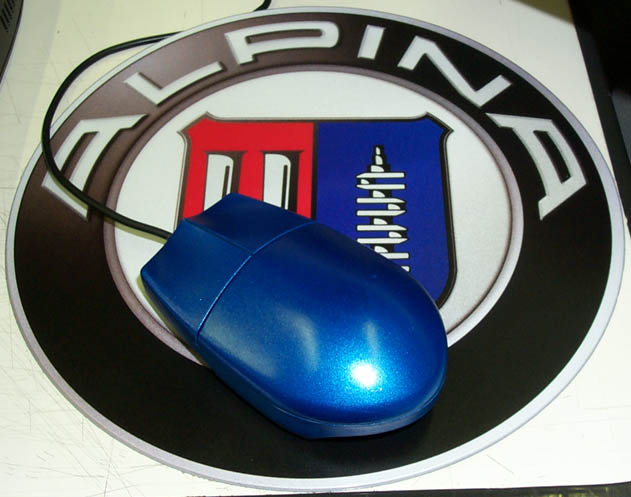 | マウスの色が素っ気ないので、アルピナブルーの疑似色(?)に全塗装してみました。いいですねぇ〜。ちなみに、塗料は田宮模型のラッカー系スプレー塗料<メタリックブルーTS19>を使用しました。 | ||