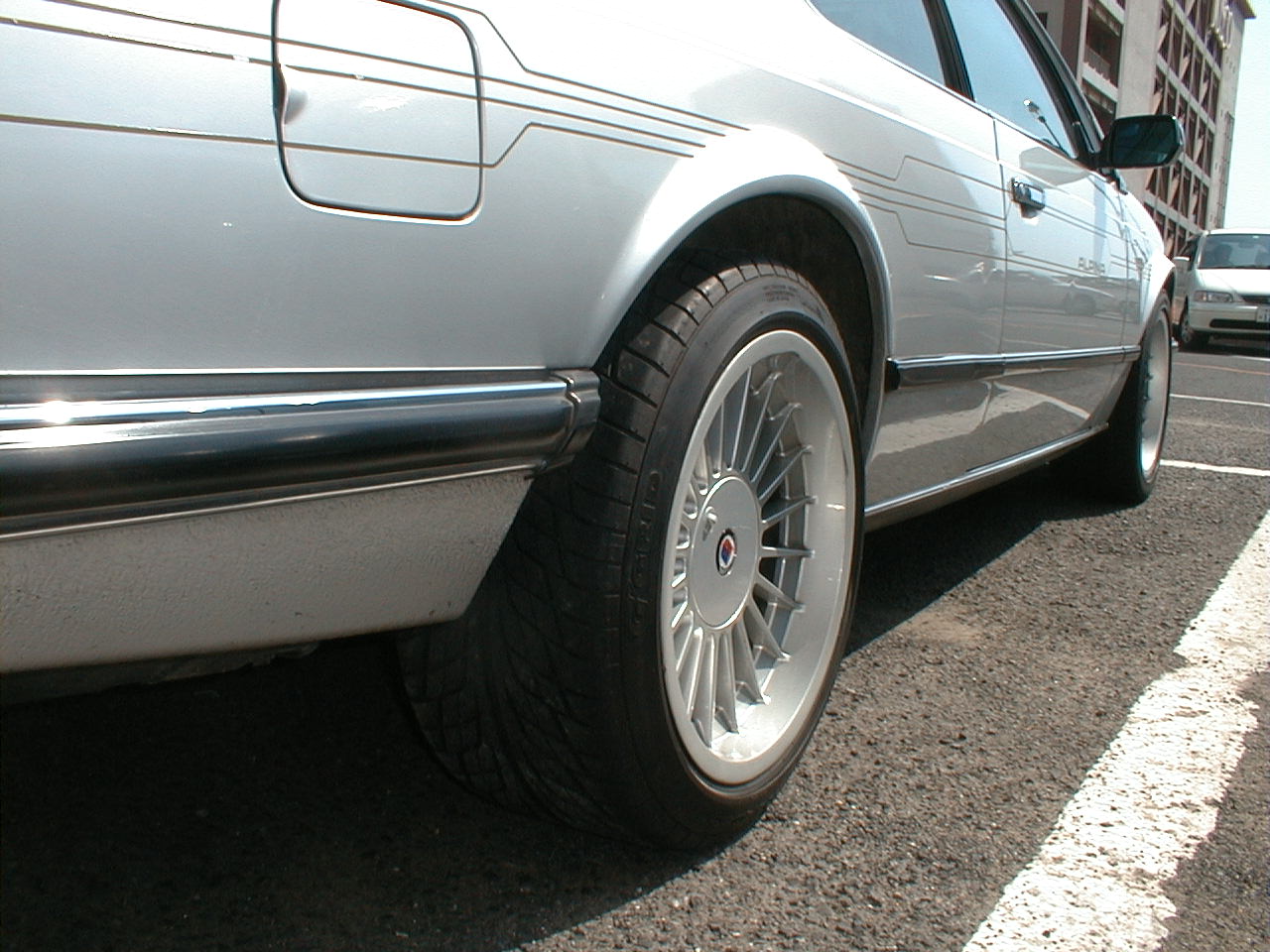 | B7kさんからお譲り頂いた 17インチ!! F245/40/17 R265/40/17 10J ど迫力でチョーお気に入りです。 (わだちに足をとられハンドルが忙しいです 笑) | ||