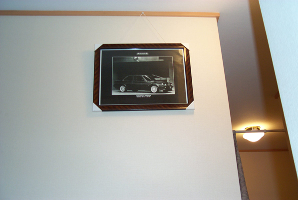 | 初公開のじまさ亭、じまさルームの写真です。 2階へ上がっていくと、壁面にはYamapinaさんから貰った、後期型B6−2.7 2Doorの写真があります。 | ||